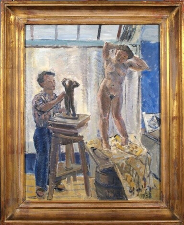Une belle amitié lie les deux artistes comme l'indique l'huile sur toile, "Le sculpteur George Grard et le modèle, Saint-Idesbald, 1938". Il s'agit d'une scène qui montre le sculpteur en train de façonner une œuvre d'après un modèle féminin posant nu, dans son atelier reconnaissable avec le mur peint au bleu de méthylène afin d'éviter l'éblouissement par la lumière du soleil. Paul Delvaux s'inspirera aussi de l'atelier de Grard !